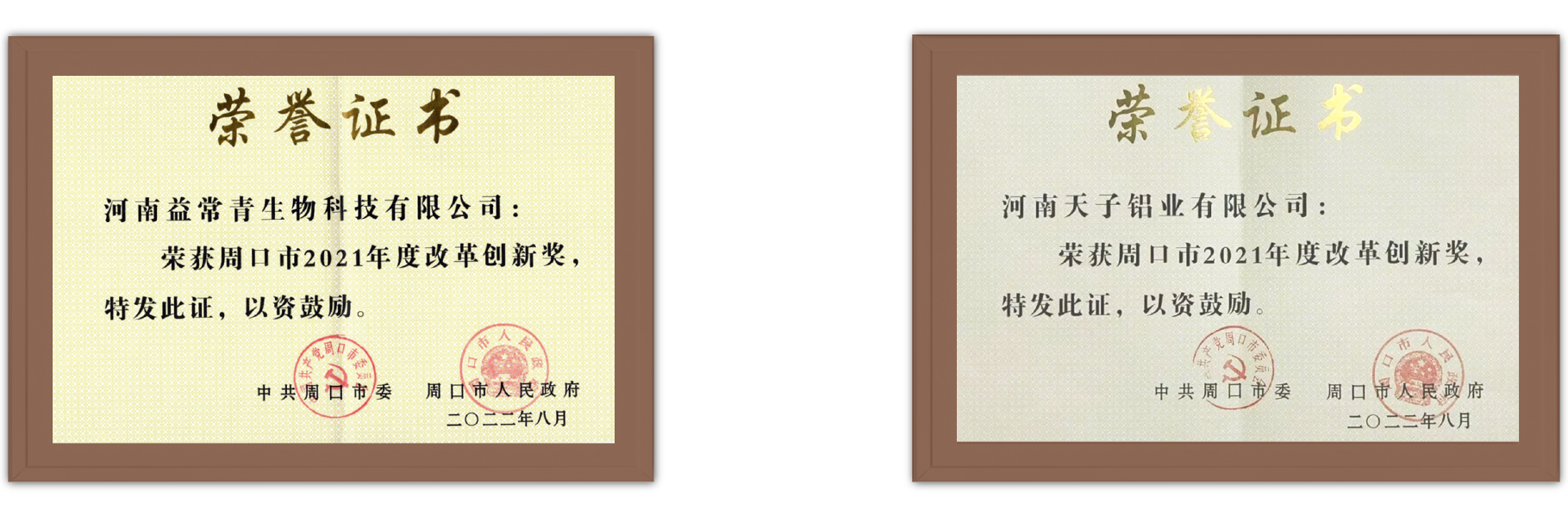 近日,河南益常青生物科技有限公司、河南天子鋁業(yè)有限公司兩家企業(yè)榮獲周口市2021年度改革創(chuàng )新獎。2021年以來(lái),益常青、天子鋁業(yè)兩家企業(yè)全面貫徹落實(shí)市委、市政府和開(kāi)發(fā)區黨委、管委會(huì )改革決策部署,堅持以改革創(chuàng )新貫徹新發(fā)展理念、融入新發(fā)展格局、推動(dòng)高質(zhì)量發(fā)展,不斷開(kāi)拓創(chuàng )新、擔當實(shí)干,實(shí)施了具有創(chuàng )新性、引領(lǐng)性的改革創(chuàng )新優(yōu)秀項目,為全區經(jīng)濟社會(huì )發(fā)展增添了動(dòng)力活力。 ![]() |
