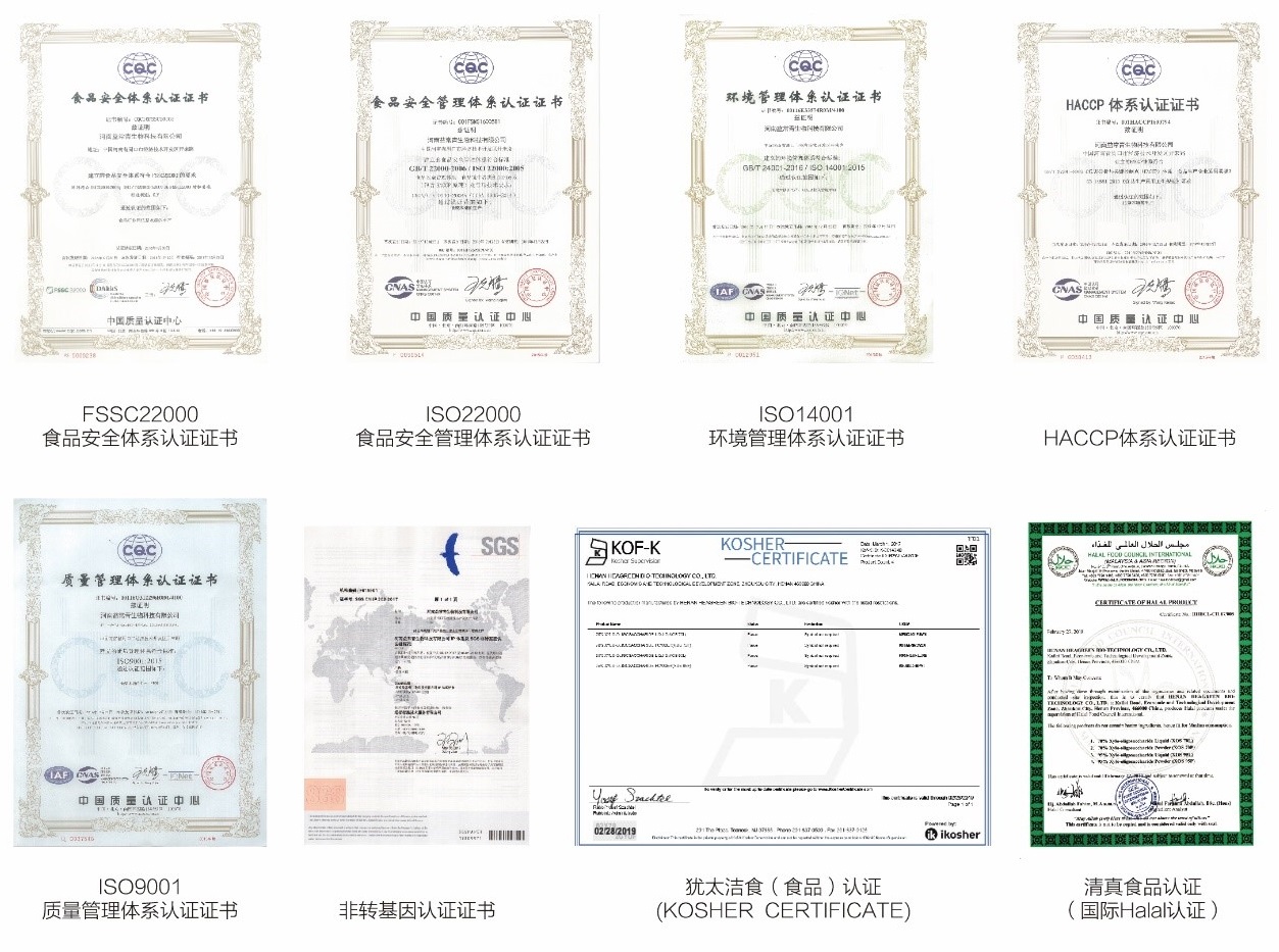 益常青采用標準化操作管理體系,相繼通過(guò)ISO22000、ISO14001、ISO9001、FSSC22000 HACCP等國際質(zhì)量認證,并通過(guò)HALAL認證、KOF-K猶太潔食認證。通過(guò)不斷優(yōu)化工藝,益常青低聚木糖在純度、質(zhì)量等方面不斷提升,目前在國內首創(chuàng )生產(chǎn)99型低聚木糖產(chǎn)品,質(zhì)量領(lǐng)先行內水平。